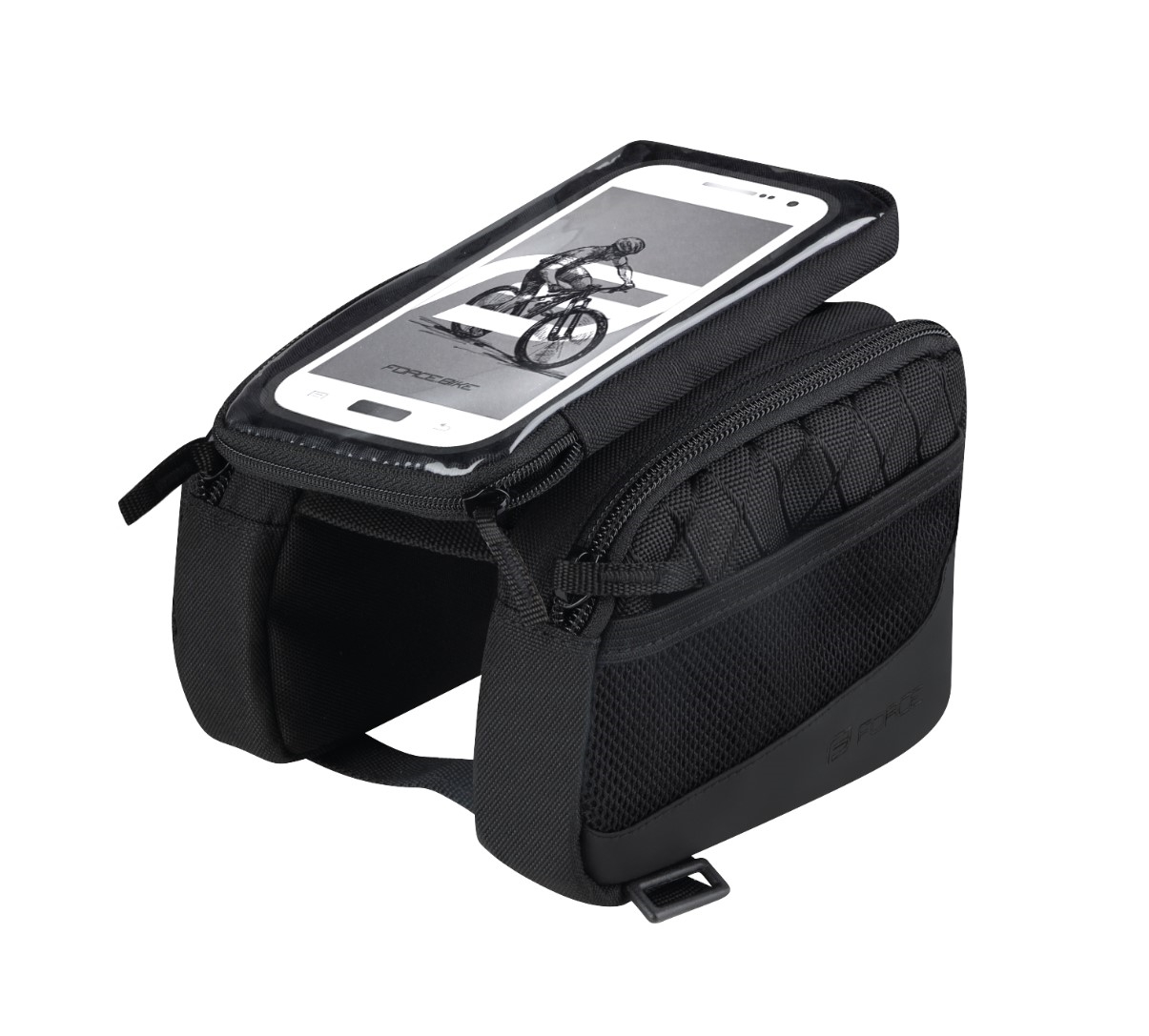 rámová brašna se dvěmi bočními přihrádkami a odnímatelným pouzdrem pro smartphone