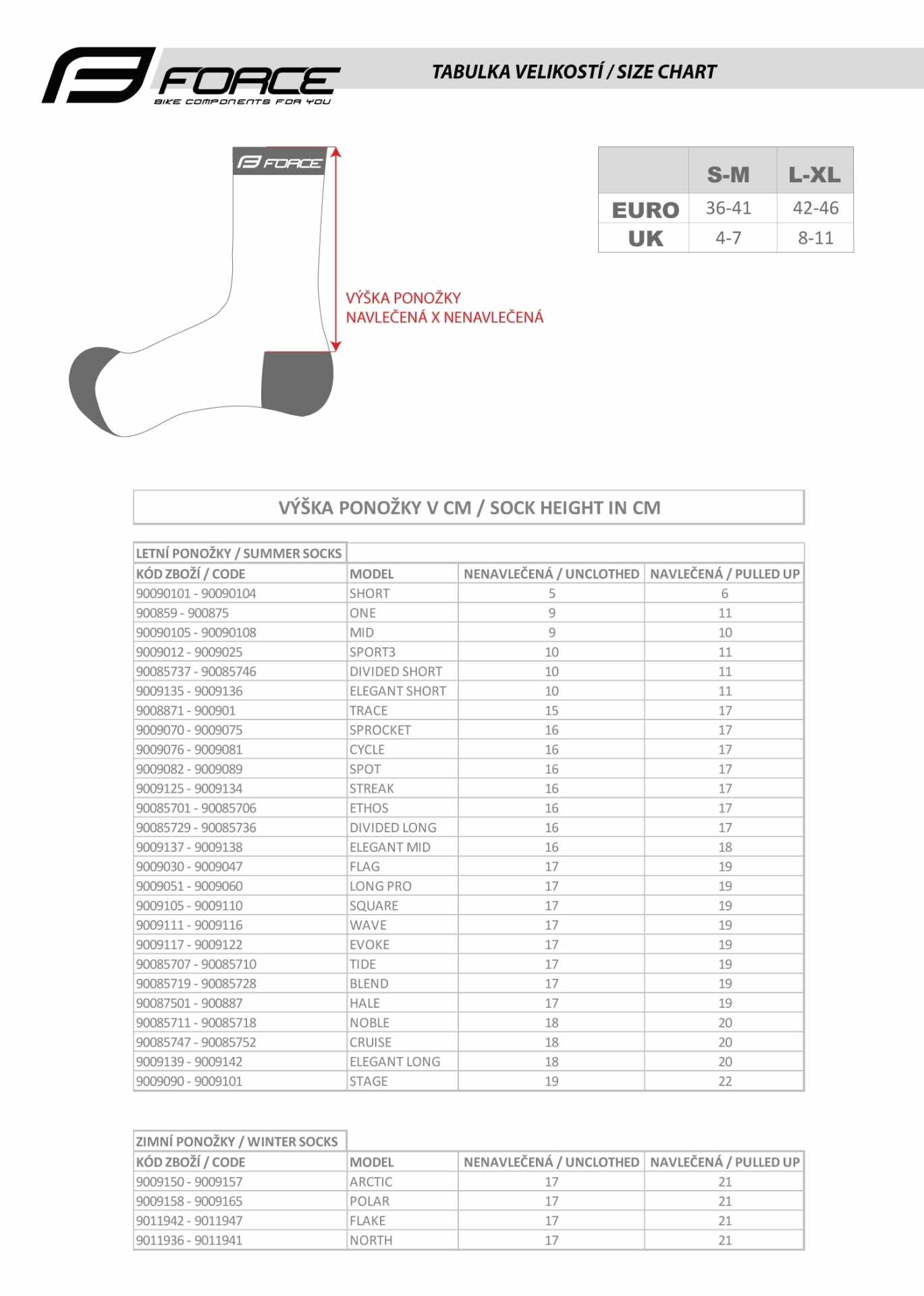 vyšší cyklistické ponožky FORCE i pro další sporty