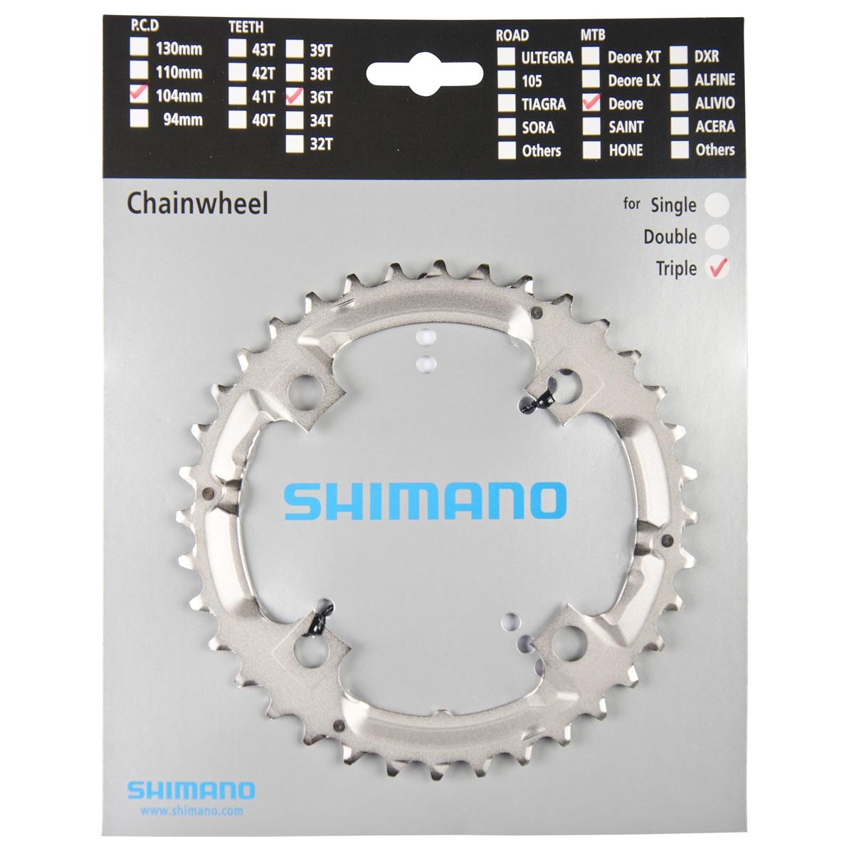 Prevodnik Deore FC-M532 36 zubo. Farba: strieborný. Rozteč: 104mm.