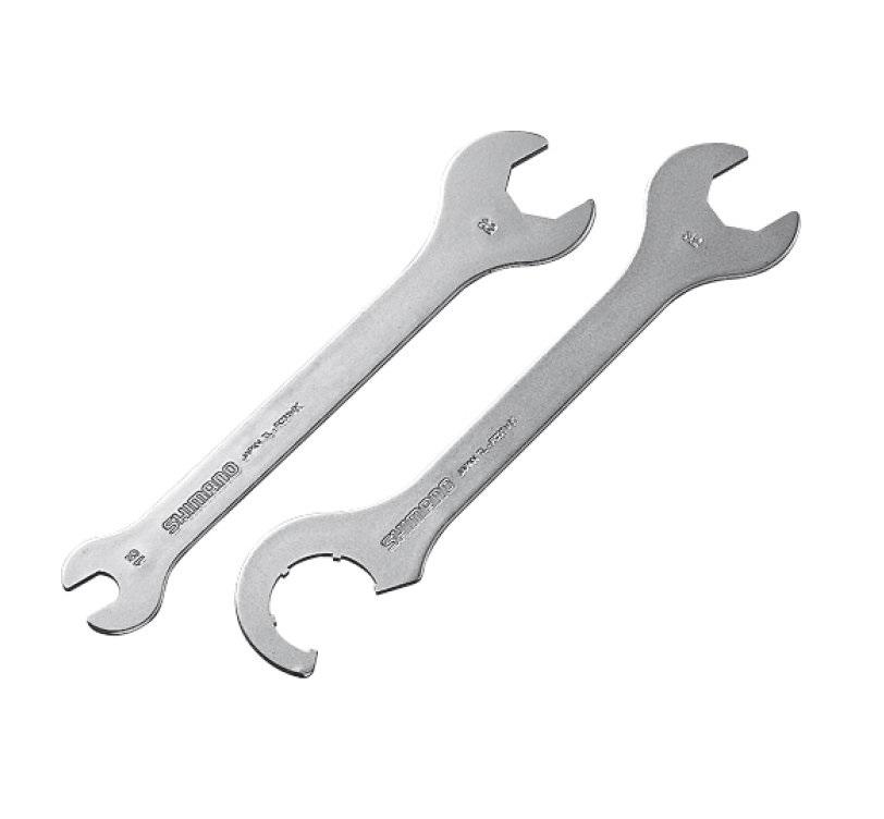 Set dvoch multifunkčných kľúčov. Je určený na nastavenie hlavového zloženia (32mm), kľúč na pedále (15mm), montáž a demontáž poistnej matice stredového zloženia (BB7700/M950). 32mm kľúč môže byť použitý spolu so sťahovákom TL-UN96/UN74-S/UN66/FC33/HA20.