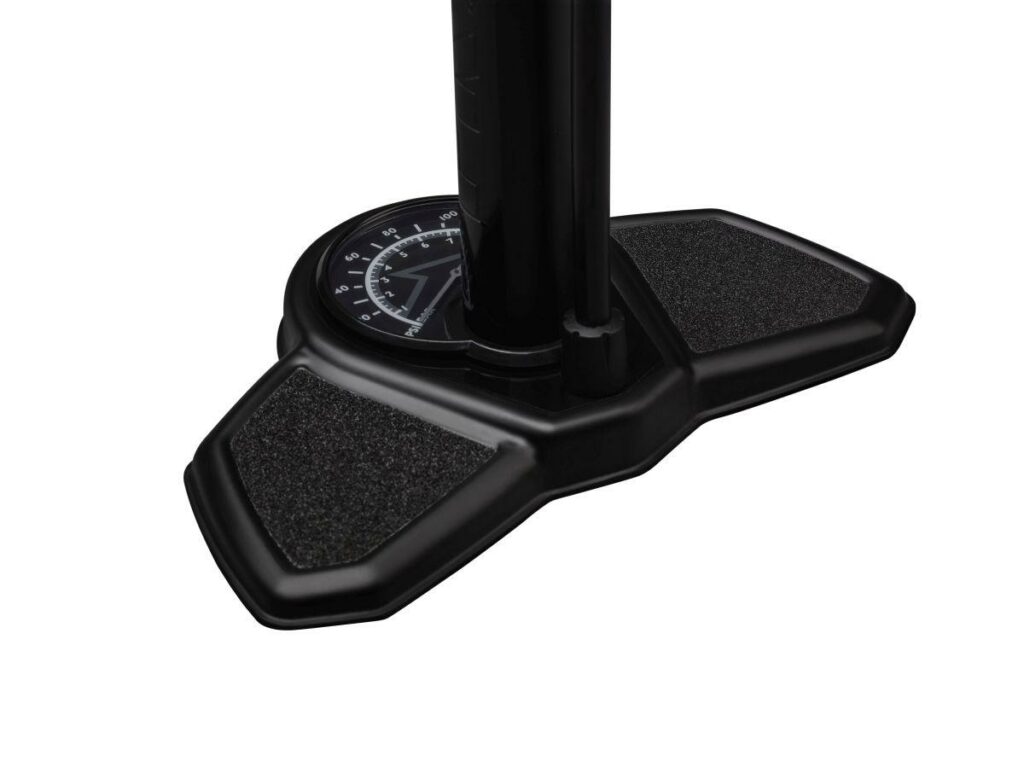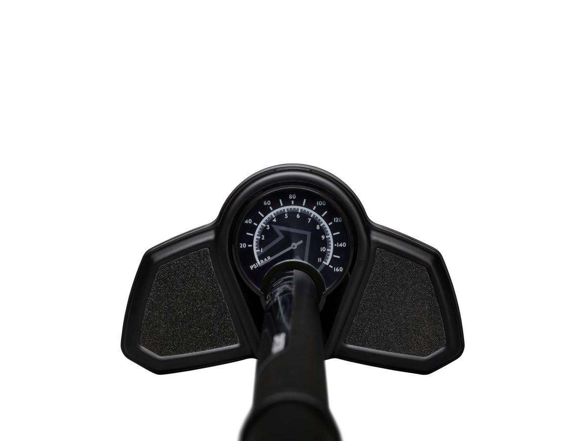 Robustné oceľové telo s manometrom.