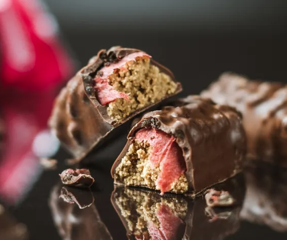 Každá tyčinka má supermäkký proteínový stredu, šikovne namiešaná pre neprekonateľnú chuť a potiahnutá karamelom a proteínovými chrumkami pre príjemnú chrumkavú textúru pri každom súste. Každá tyčinka je potom bohato pokrytá hladkou čokoládovou polevou. Proteínová tyčinka ešte nikdy nechutila tak dobre.
