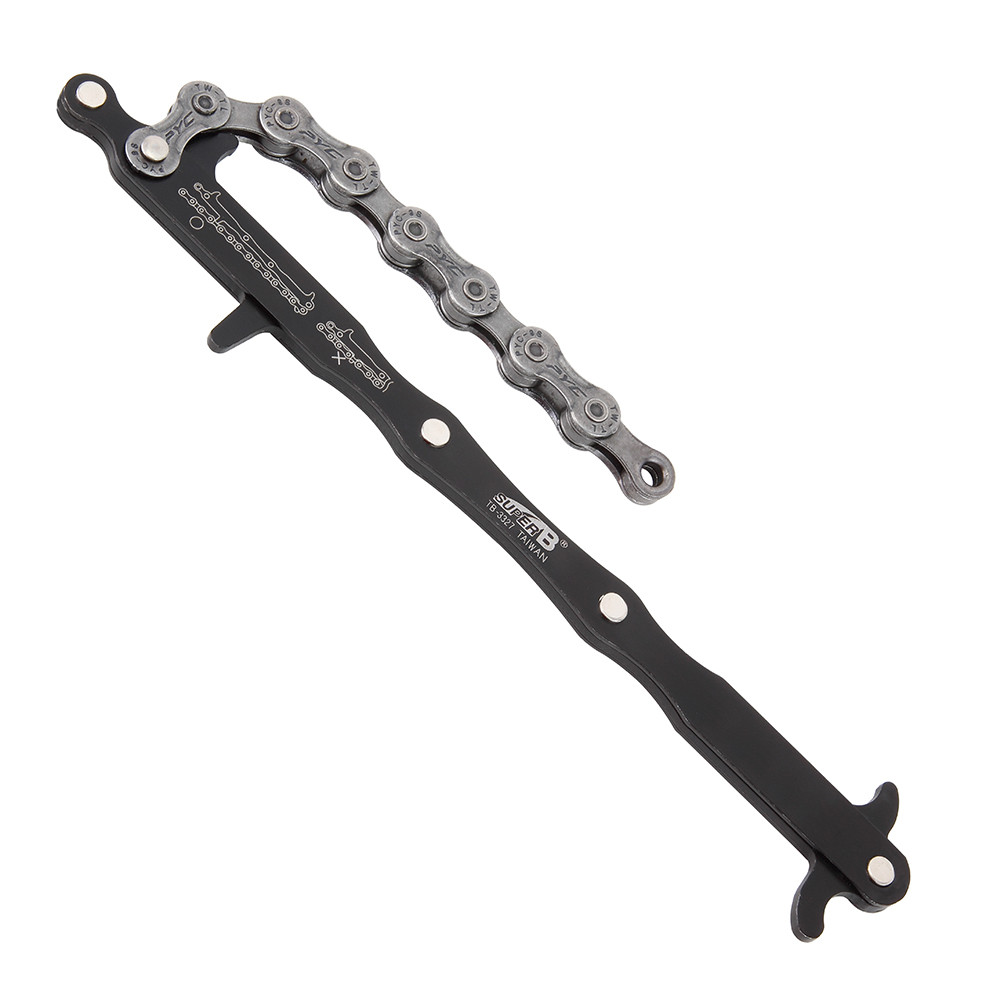 Praktický pomocník do dielne, ktorý v sebe spája mierku na reťaz a zároveň aj mierku na opotrebenie ozubených kolies.
